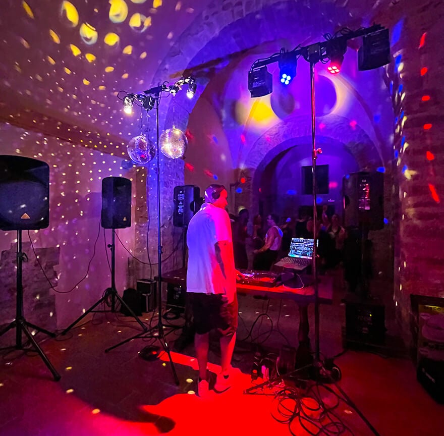 L’illuminazione è l’elemento che trasforma uno spazio e definisce l’energia della tua festa. Creiamo scenografie luminose perfette per ogni location in Umbria e Toscana.
