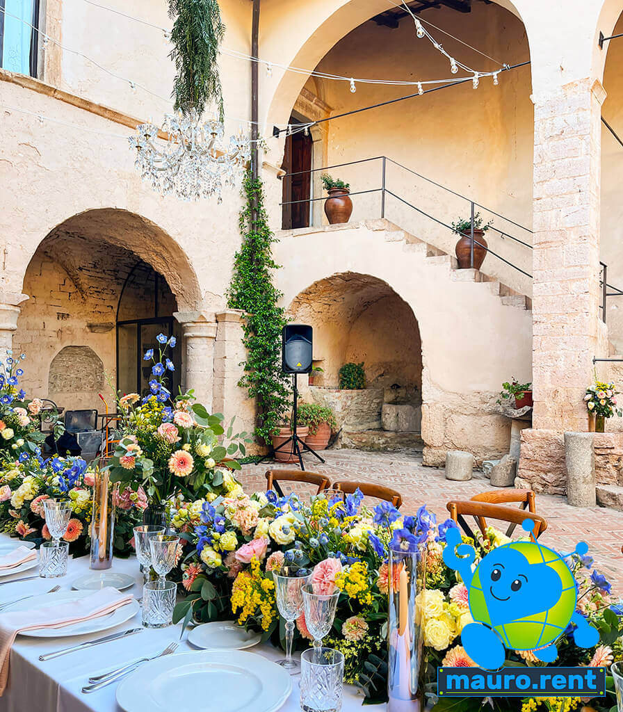 La scelta perfetta per gli Eventi che richiedono una gestione audio più complessa. Con due installazioni separate, una per l’aperitivo e una per la cena, puoi creare atmosfere sonore diverse e personalizzate in due aree distinte. Questa soluzione offre il doppio delle casse per una copertura sonora ancora più potente e distribuita, oltre a tutta l’attrezzatura di alta qualità e il supporto del nostro tecnico per un servizio “chiavi in mano”.