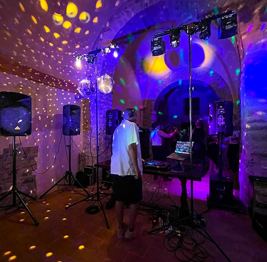 Durante tutto il Party, avrai la tranquillità di sapere che un Tecnico luci esperto sarà al tuo fianco. Gestirà la regia luci in tempo reale, sincronizzando gli effetti con la musica, risolverà ogni esigenza e garantirà un flusso luminoso impeccabile e la sicurezza che ogni effetto funzioni alla perfezione in tutta l’area tra Umbria e Toscana. La tua luce, la nostra priorità.